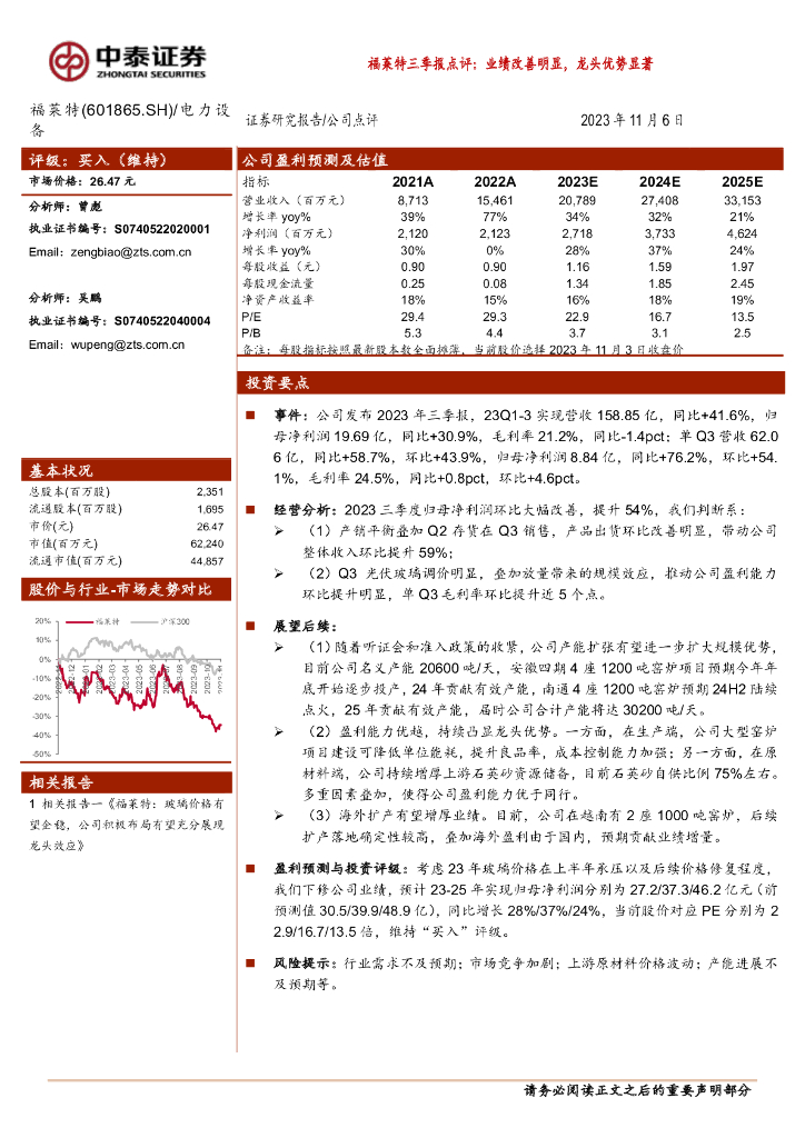 中泰证券:福莱特三季报点评:业绩改善明显,龙头优势显著.pdf