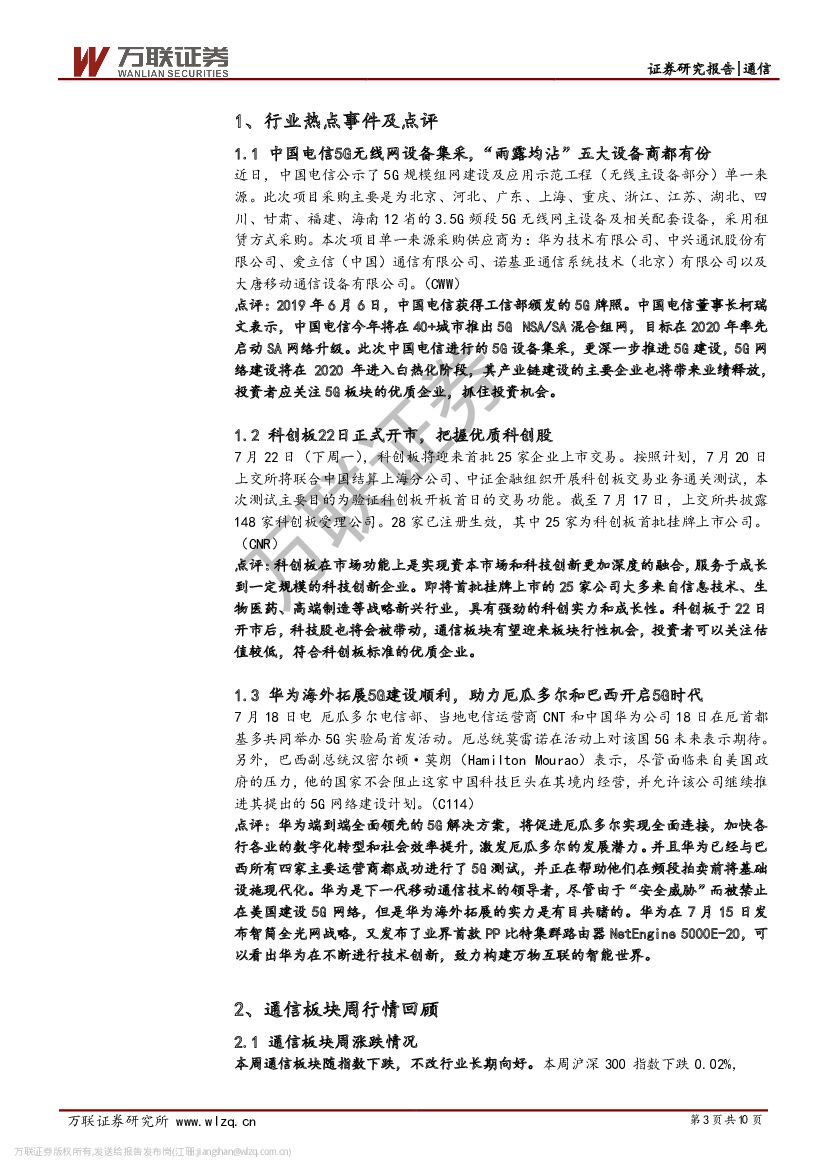 万联证券:通信行业周观点:5G建设顺利,把握各环节投资机遇.pdf