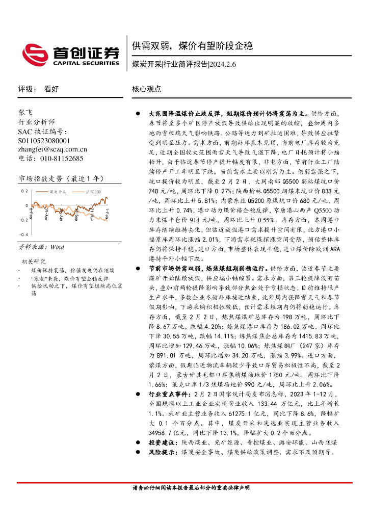 首创证券:煤炭开采行业简评报告:供需双弱,煤价有望阶段企稳.pdf