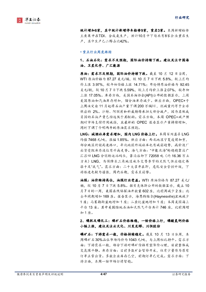 华安证券:基础化工行业周报:原油、乙烷价格震荡下行,TDI、丙烯酸价差扩大.pdf