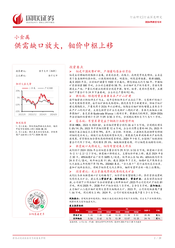 国联证券:小金属行业深度研究:供需缺口放大,钼价中枢上移.pdf