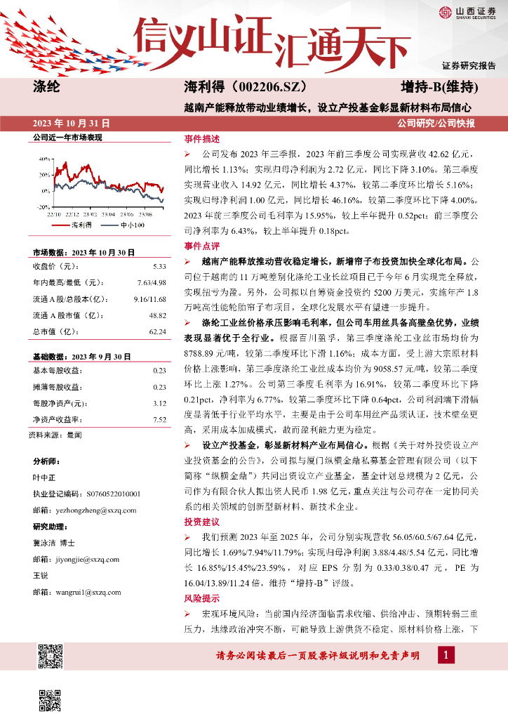 山西证券:海利得(002206)-越南产能释放带动业绩增长,设立产投基金彰显新材料布局信心.pdf