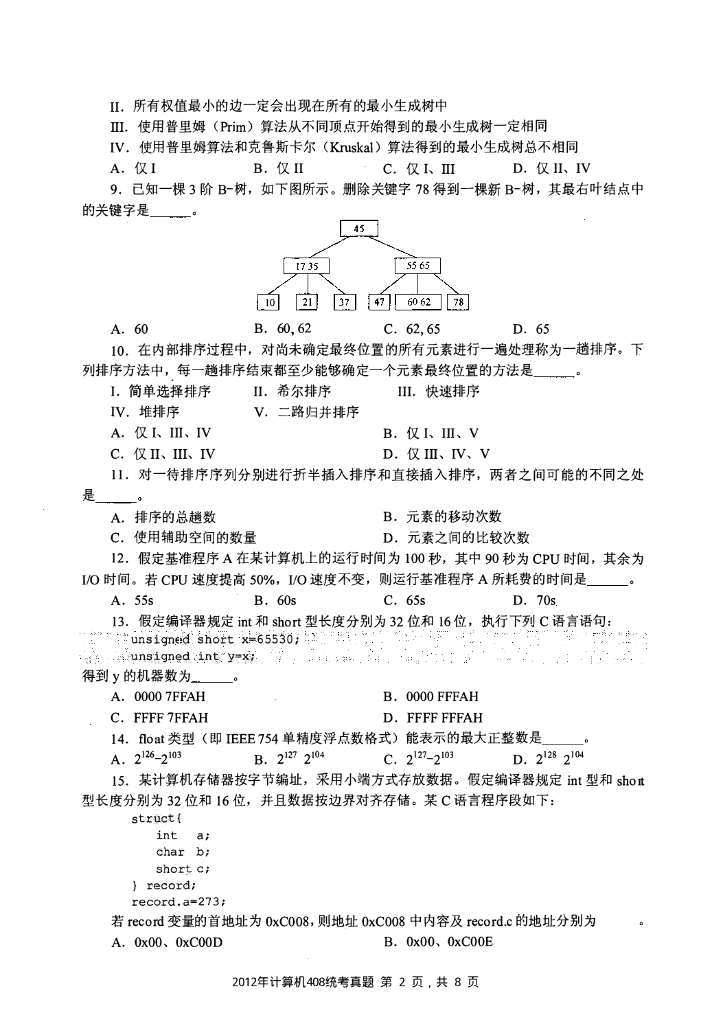 2012年全国硕士研究生入学统一考试计算机科学与技术学科联考计算机学科专业408基础综合试题+解析.pdf