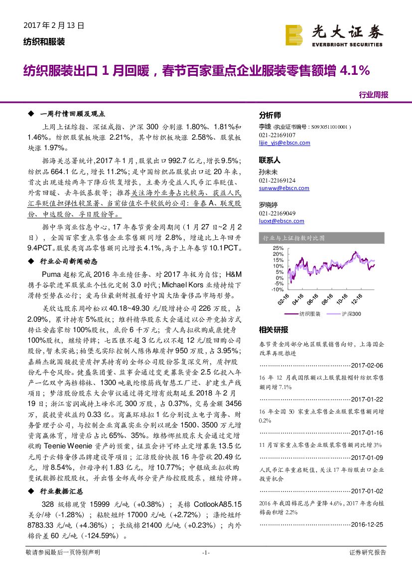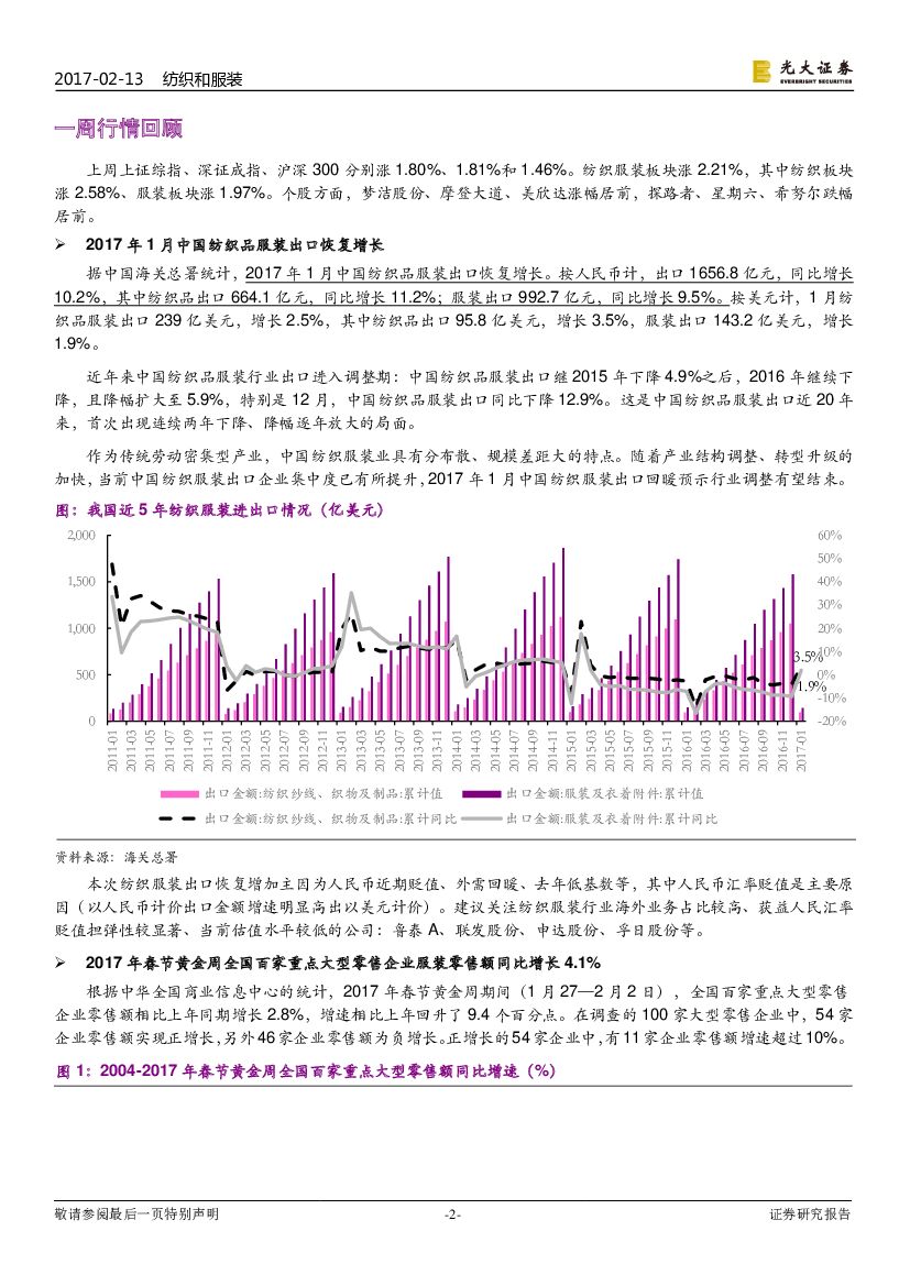 光大证券:纺织和服装行业周报:纺织服装出口1月回暖,春节百家重点企业服装零售额增4.1%.pdf