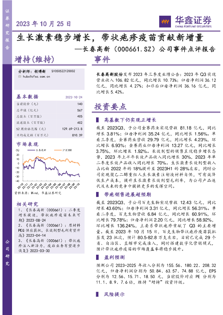 华鑫证券:长春高新(000661)-公司事件点评报告:生长激素稳步增长,带状疱疹疫苗贡献新增量.pdf