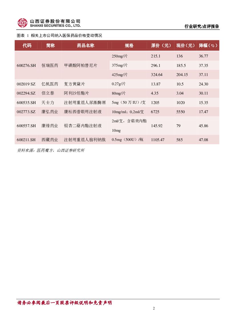 山西证券:医药生物行业:医保目录谈判结果点评报告-重大疾病与创新药成功纳入医保,涉及多家上市公司.pdf