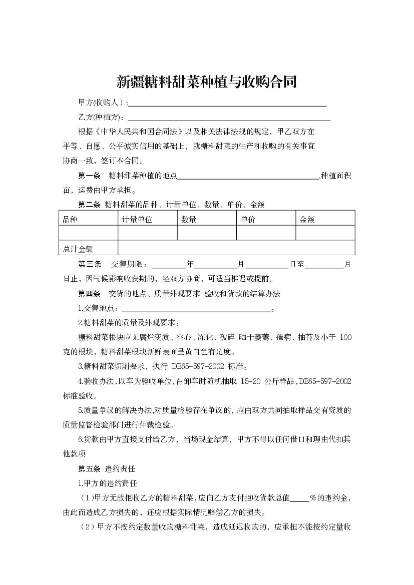 新疆糖料甜菜种植与收购合同(示范文本).pdf