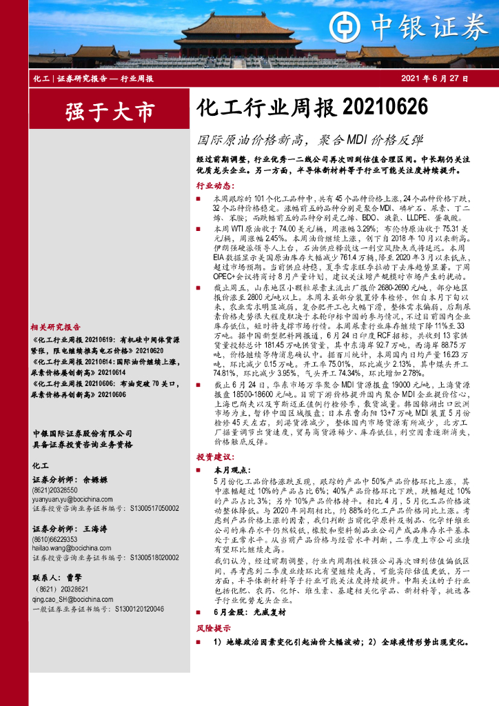 中银证券:化工行业周报:国际原油价格新高,聚合MDI价格反弹.pdf