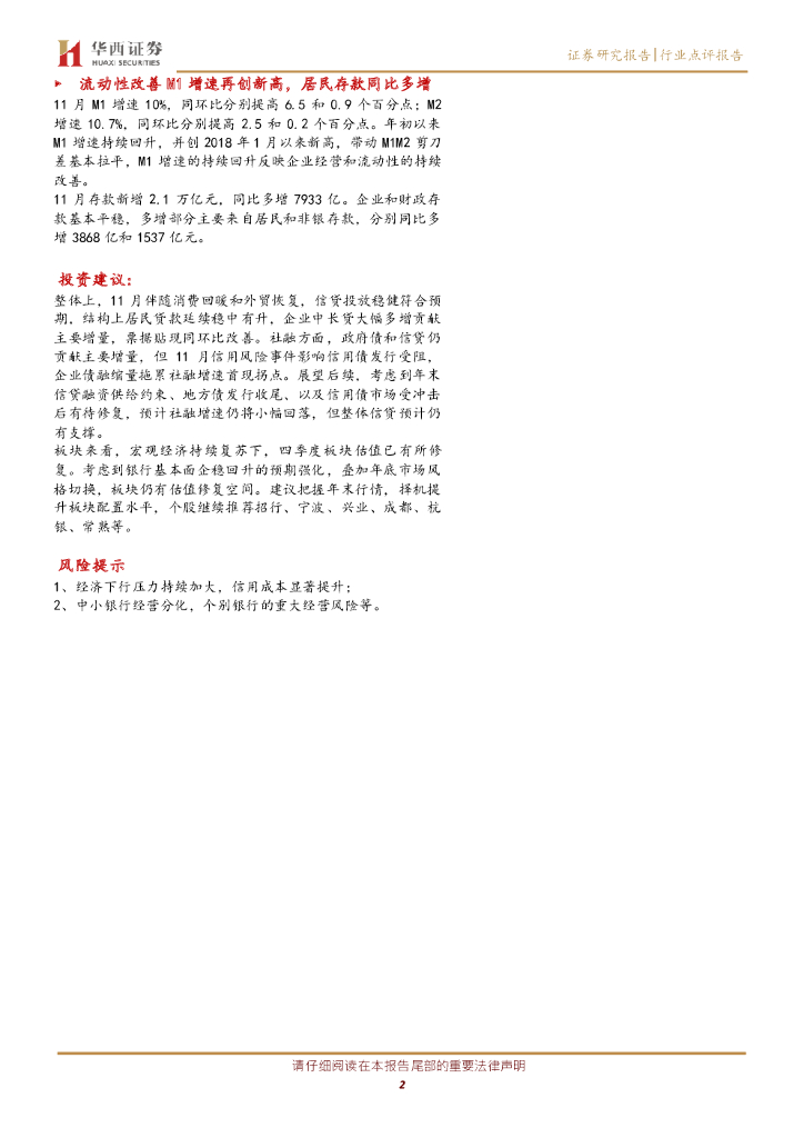 华西证券:银行行业点评报告:11月信贷稳健M1高增,企业债拖累社融现拐点.pdf