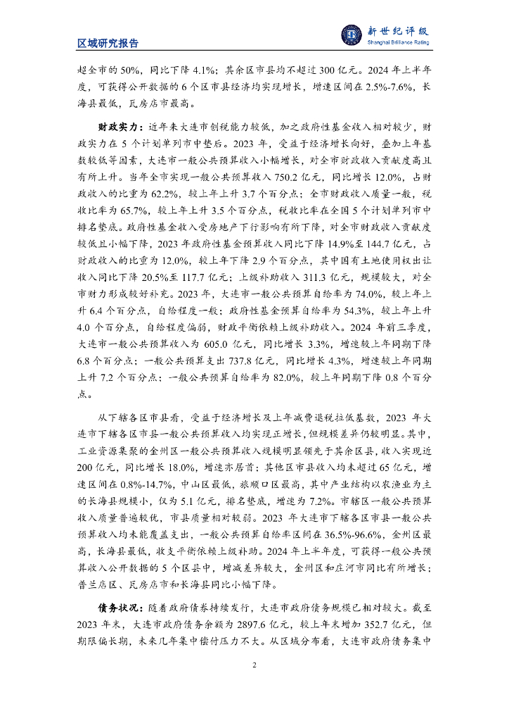 新世纪评级:大连市及下辖各区市县经济财政实力与债务研究(2024).pdf