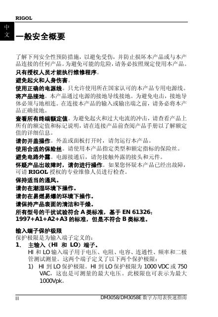 RIGOL DM3058/DM3058E 数字万用表快速指南.pdf