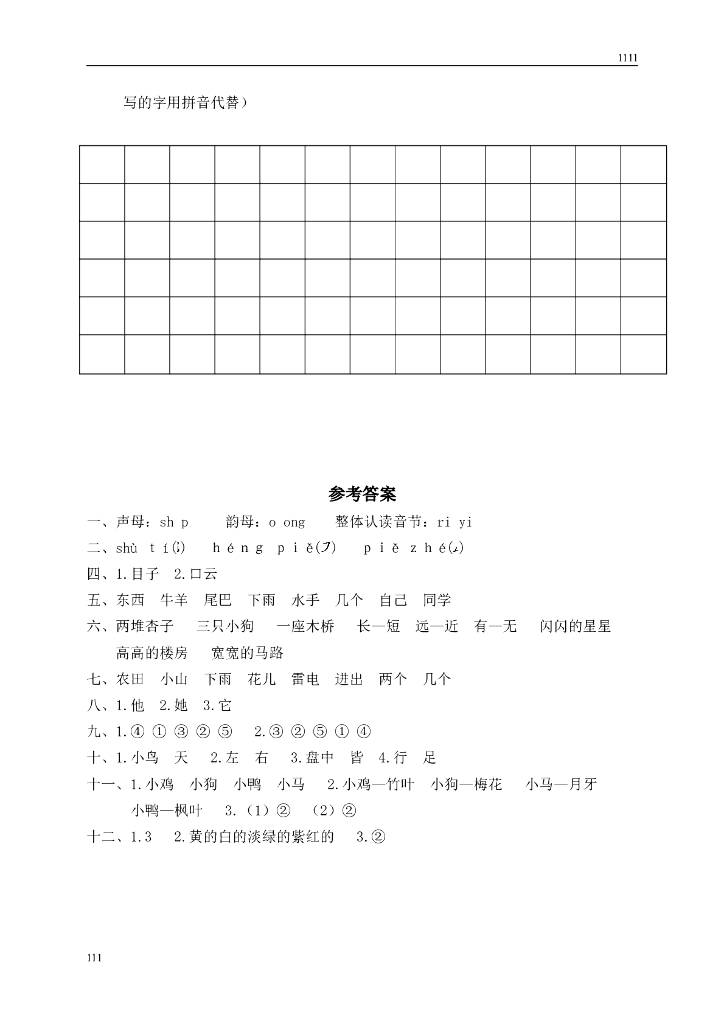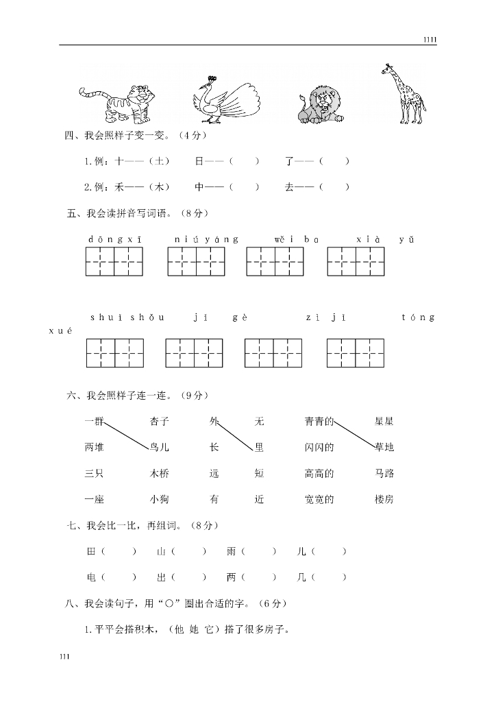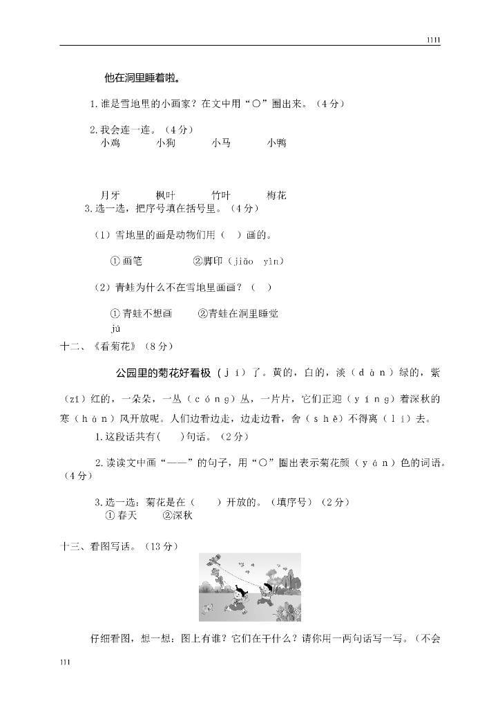 部编语文一年级上册期末复习试卷 (5).doc