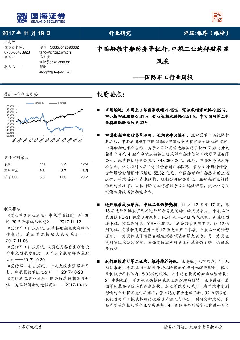 国海证券:国防军工行业周报:中国船舶中船防务降杠杆,中航工业迪拜航展显风采.pdf
