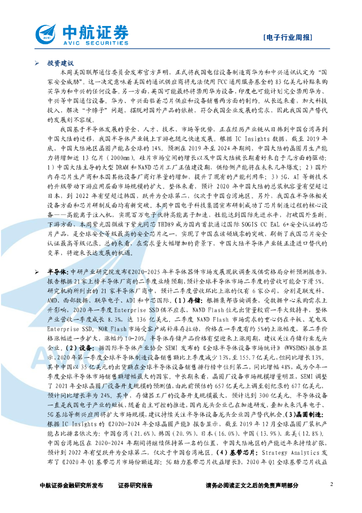中航证券:电子行业周报:美国将华为、中兴认定为“国家安全威胁”,关注我国半导体产业链国产替代新突破.pdf