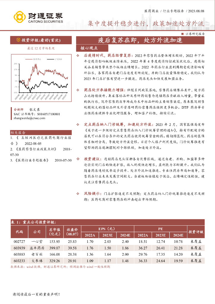 财通证券:医药商业行业专题报告:集中度提升稳步进行,政策加速处方外流.pdf