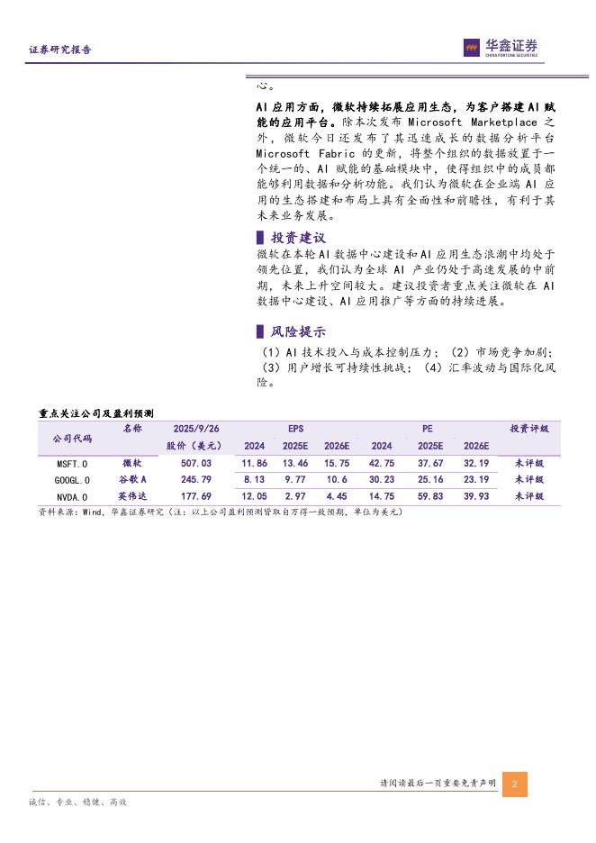 华鑫证券:计算机行业点评报告:微软(MSFT.O):发布整合性应用市场,强化云计算和AI应用生态.pdf