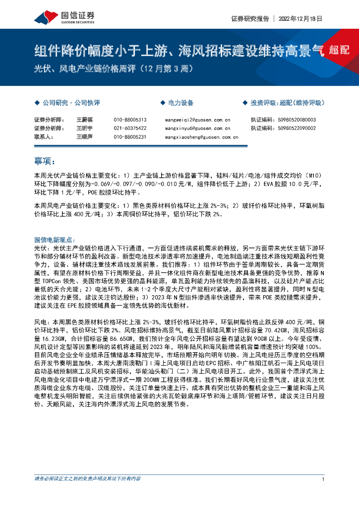 国信证券:光伏、风电产业链价格周评(12月第3周):组件降价幅度小于上游、海风招标建设维持高景气.pdf