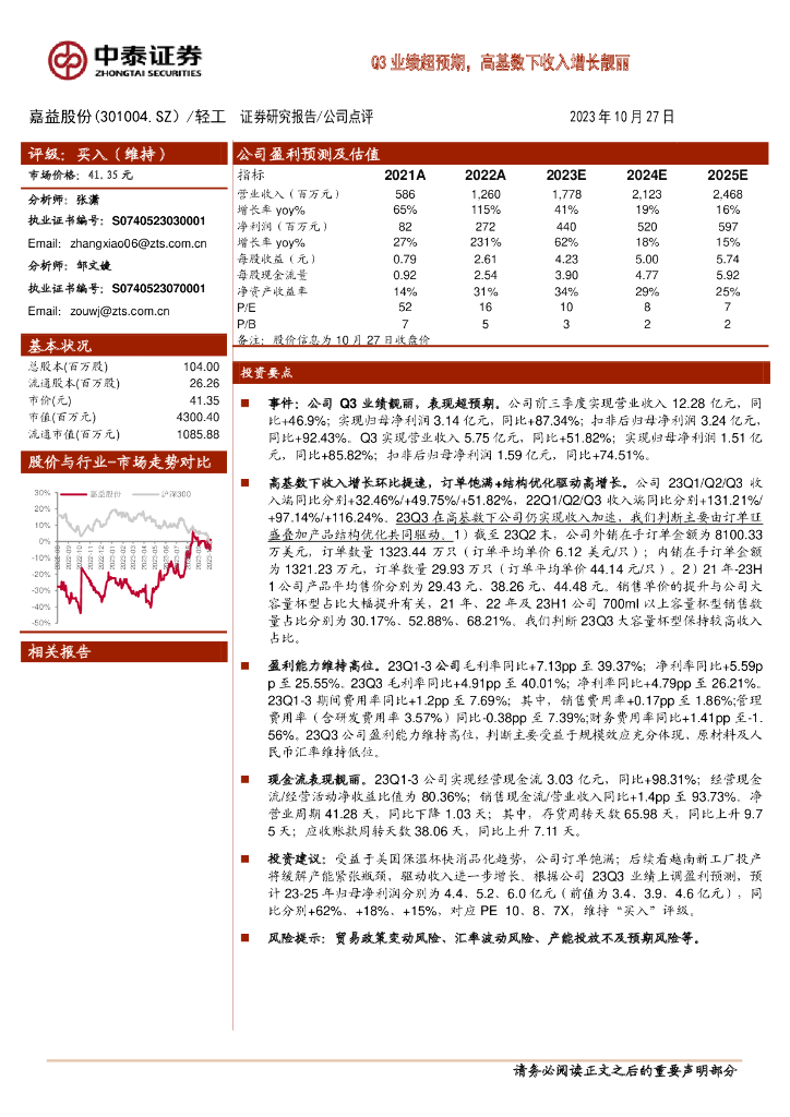 中泰证券:嘉益股份(301004)-Q3业绩超预期,高基数下收入增长靓丽.pdf