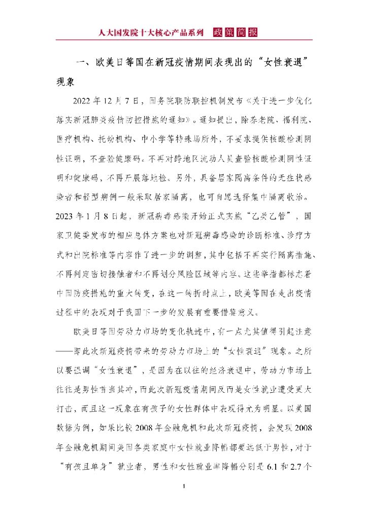 人大国发院:国发院政策简报第一百四十四期:关注新冠疫情期间出现的“女性衰退”问题.pdf
