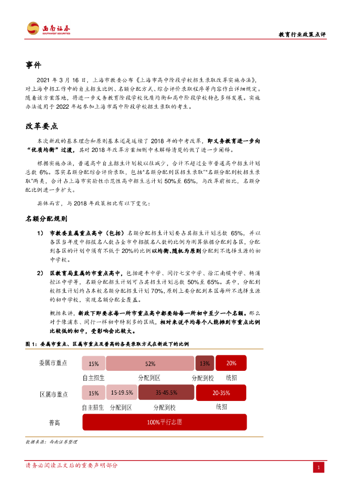 西南证券:教育行业政策点评:“均贫富”,上海中招新政落地.pdf