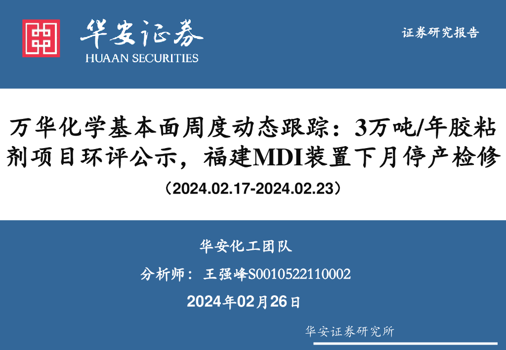 华安证券:万华化学基本面周度动态跟踪:3万吨/年胶粘剂项目环评公示,福建MDI装置下月停产检修.pdf