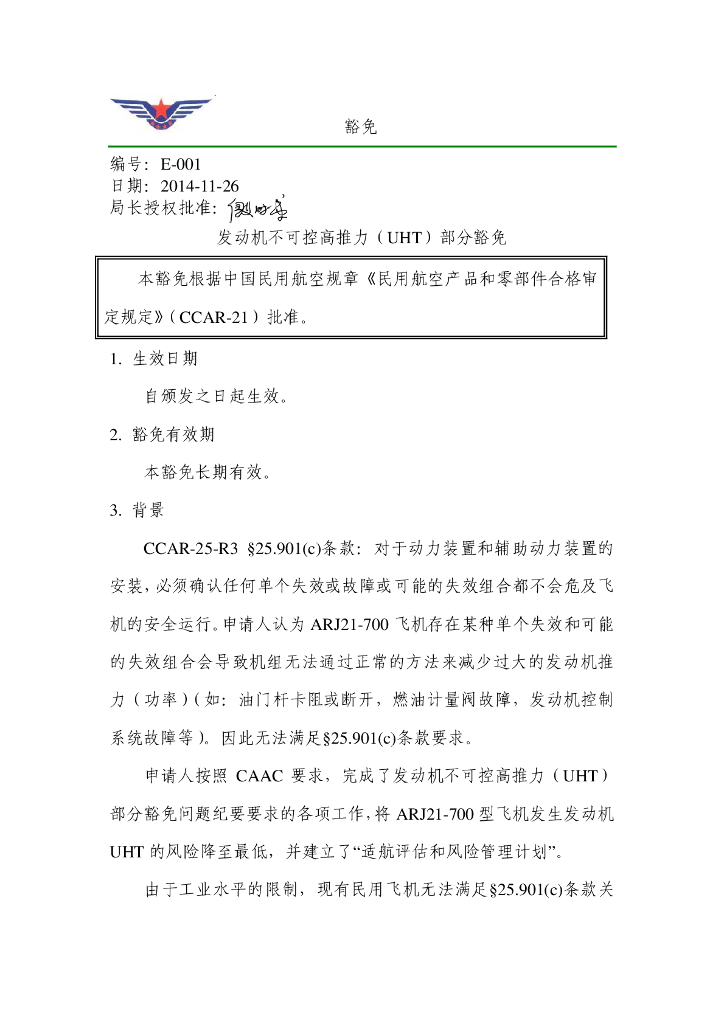 发动机不可控高推力(UHT)部分豁免.pdf