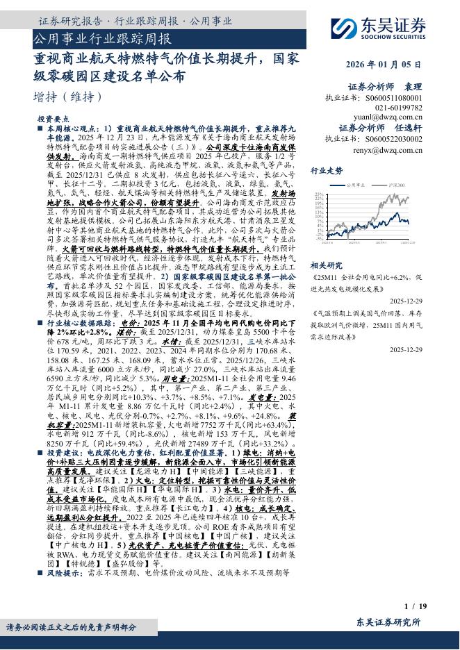 东吴证券:公用事业行业跟踪周报:重视商业航天特燃特气价值长期提升,国家级零碳园区建设名单公布.pdf