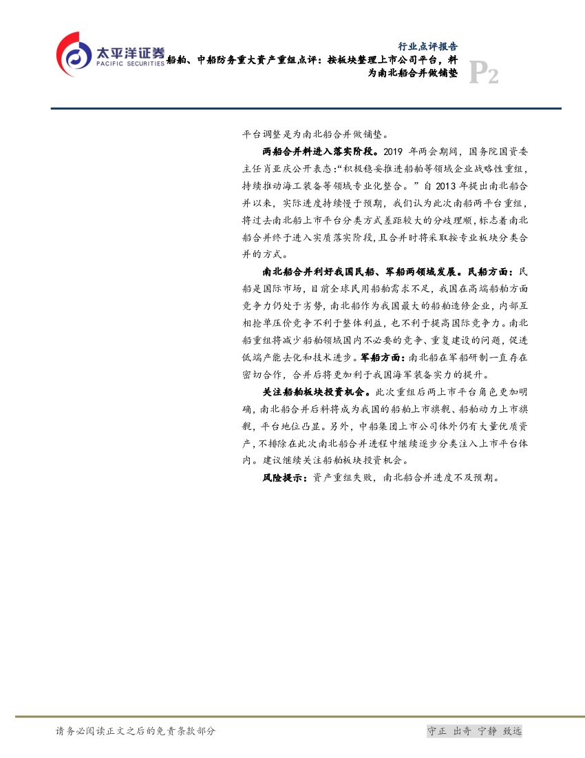 太平洋证券:中国船舶、中船防务重大资产重组点评:按板块整理上市公司平台,料为南北船合并做铺垫.pdf