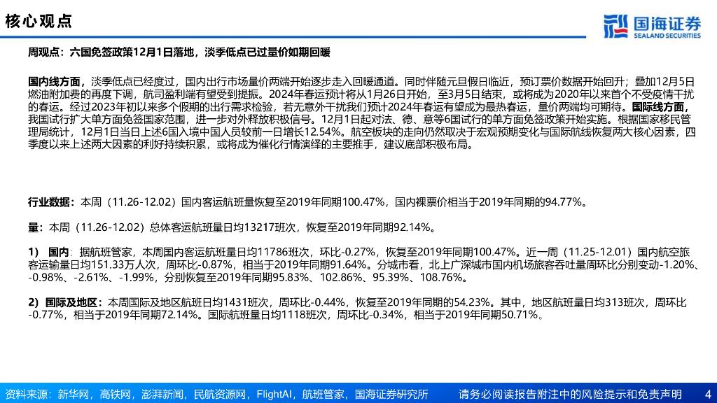 国海证券:航空行业周报(2023第49周):六国免签政策12月1日落地,淡季低点已过量价如期回暖.pdf