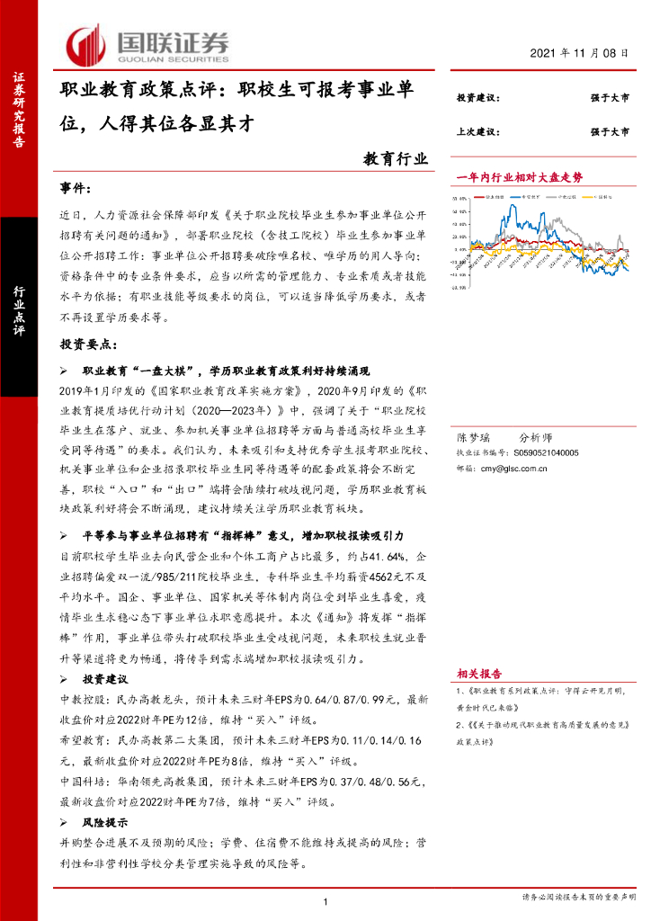 国联证券:教育行业:职业教育政策点评:职校生可报考事业单位,人得其位各显其才.pdf