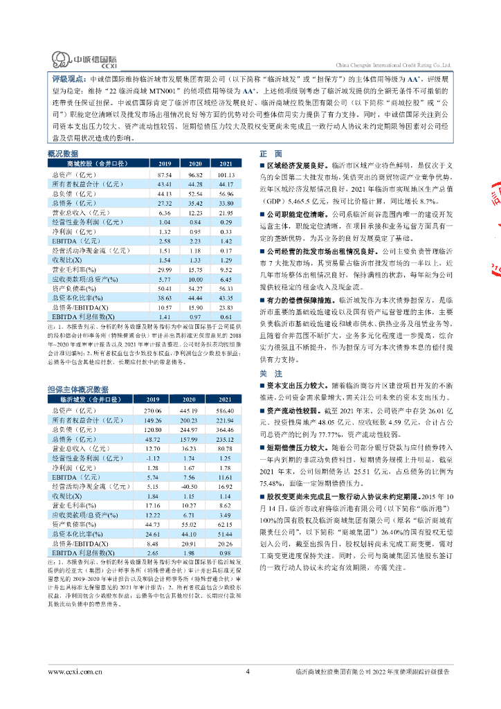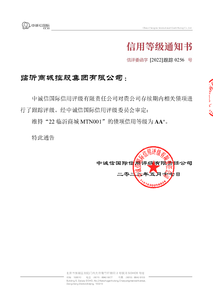 中诚信:临沂商城控股集团有限公司2022年度债项跟踪评级报告.pdf