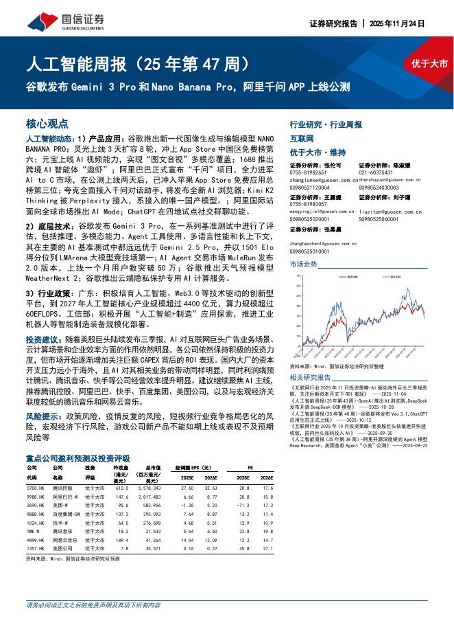 国信证券:人工智能行业周报(25年第47周):谷歌发布Gemini3Pro和NanoBananaPro,阿里千问APP上线公测.pdf