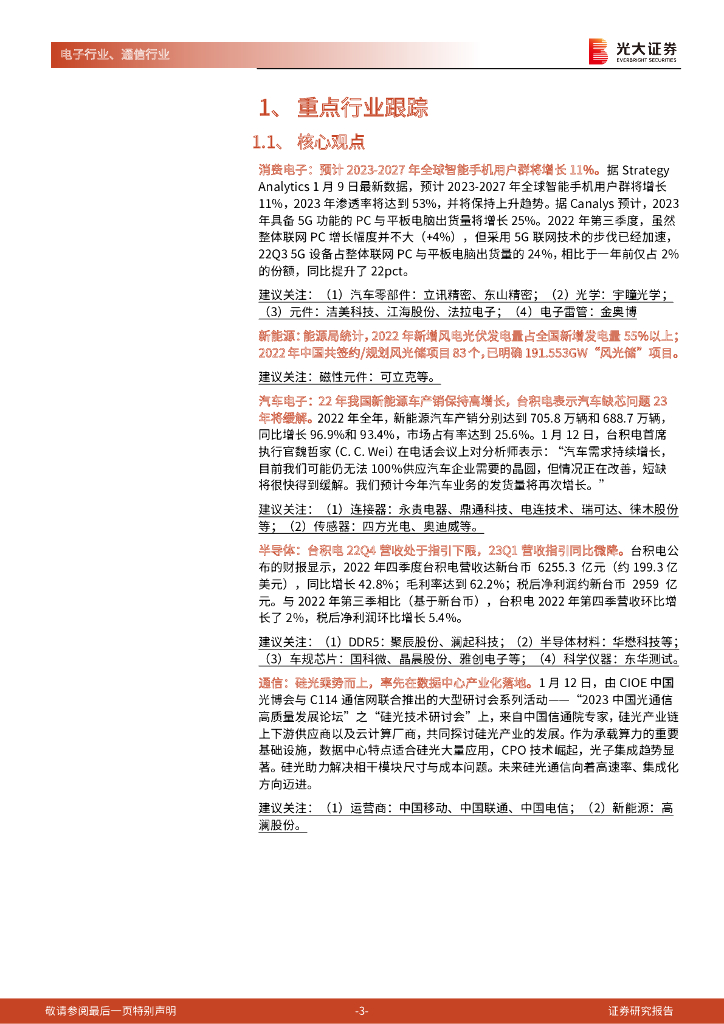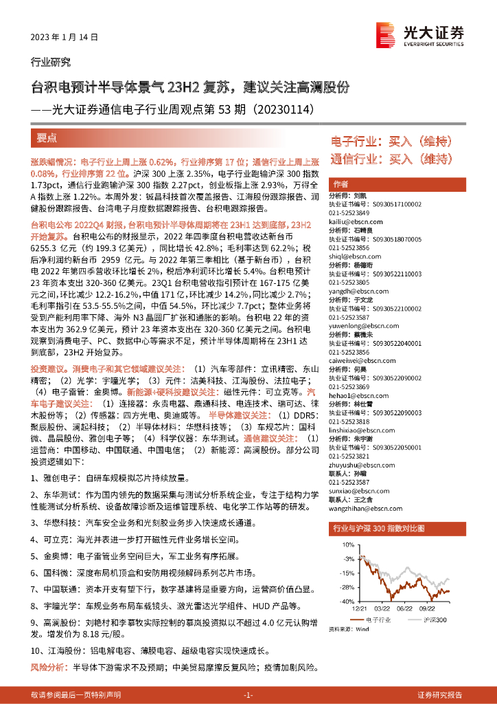 光大证券:通信电子行业周观点第53期:台积电预计半导体景气23H2复苏,建议关注高澜股份.pdf
