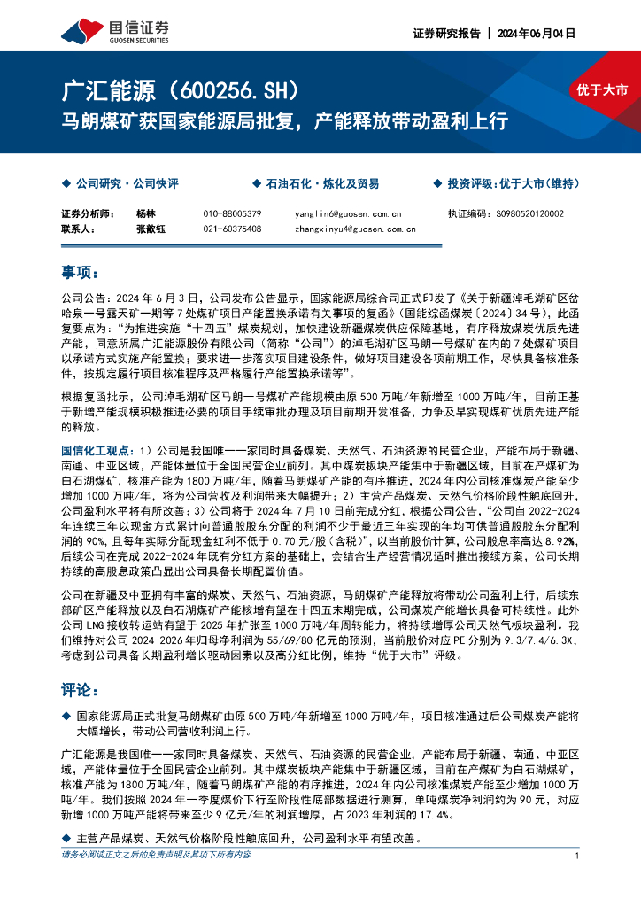 国信证券:广汇能源(600256)-马朗煤矿获国家能源局批复,产能释放带动盈利上行.pdf