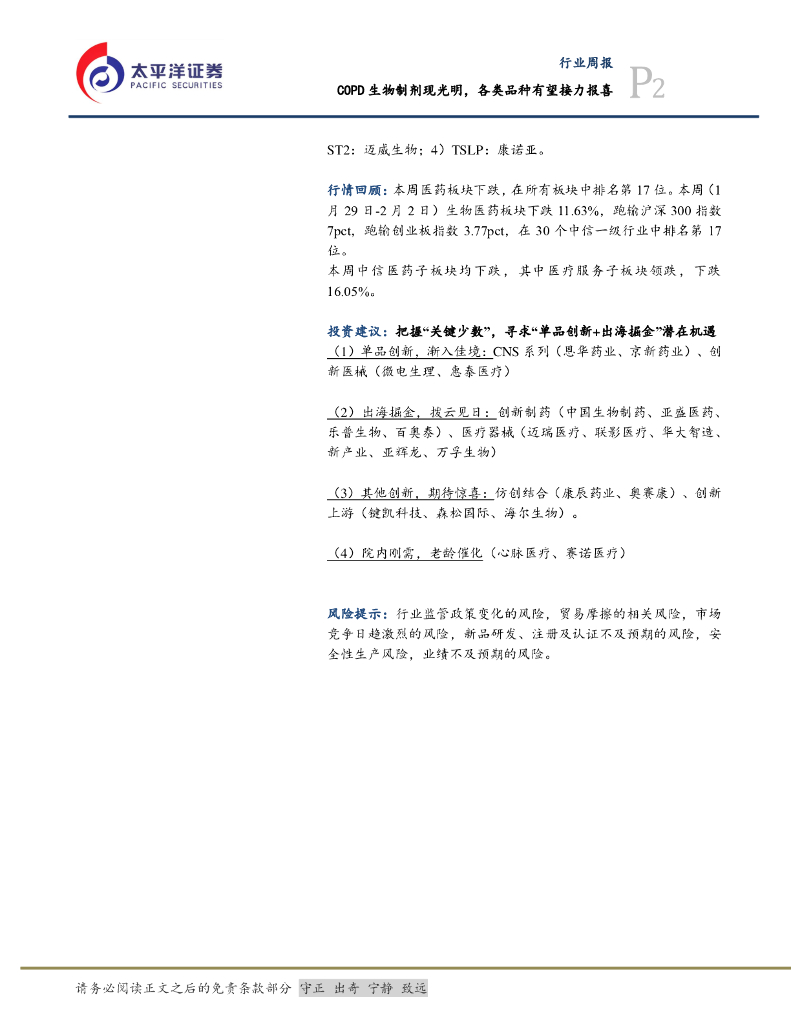 太平洋证券:生物医药II行业周报:COPD生物制剂现光明,各类品种有望接力报喜.pdf