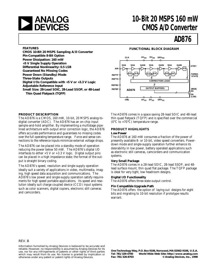 ANALOG DEVICES AD876 英文产品 数据手册 Rev B.pdf
