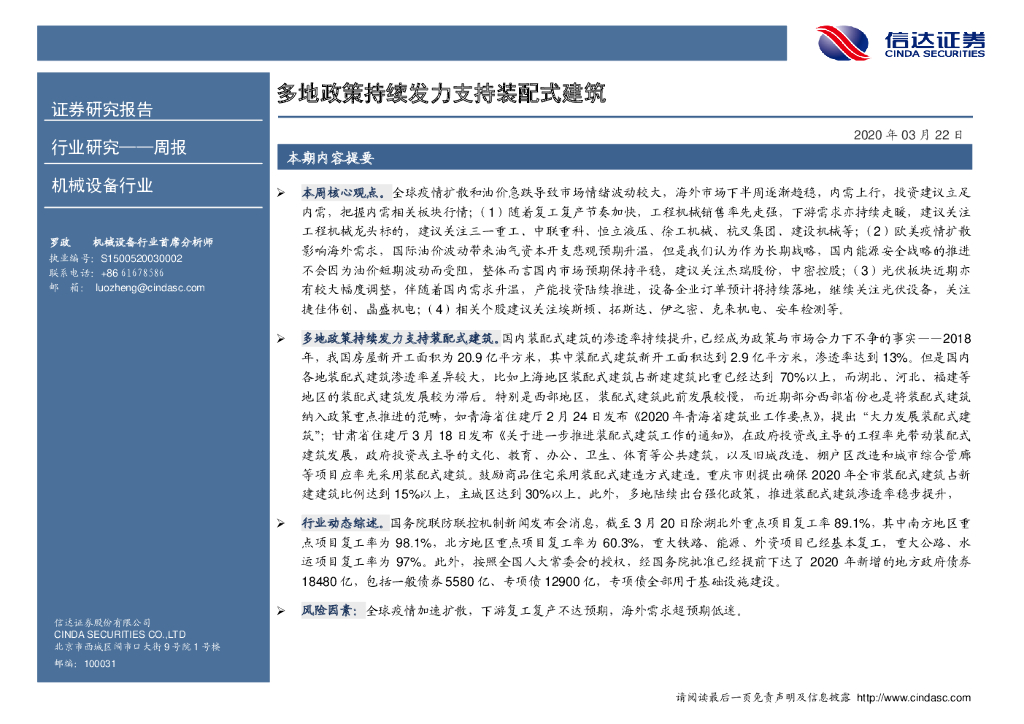 信达证券:机械设备行业周报:多地政策持续发力支持装配式建筑.pdf