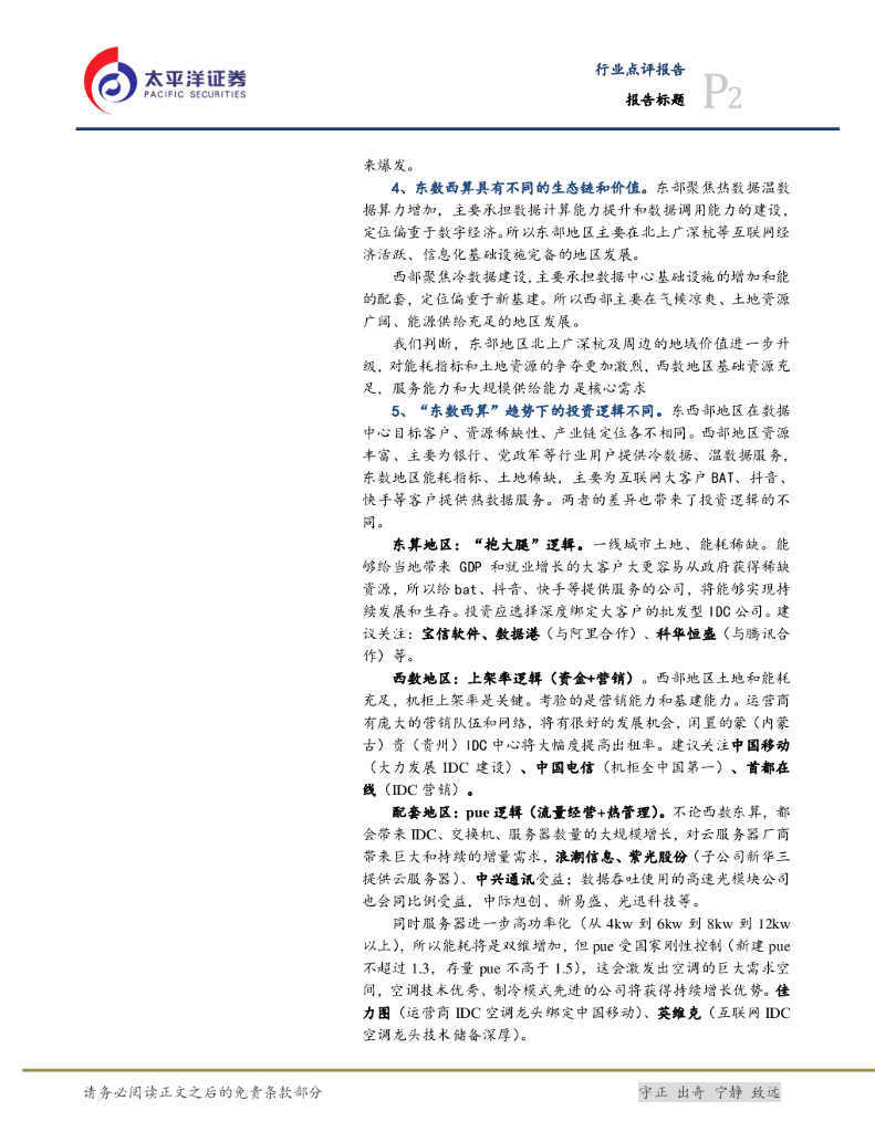 太平洋证券:通信设备Ⅲ行业点评报告:建设全国算力网络“东数西算”,两套生态链下的投资逻辑.pdf