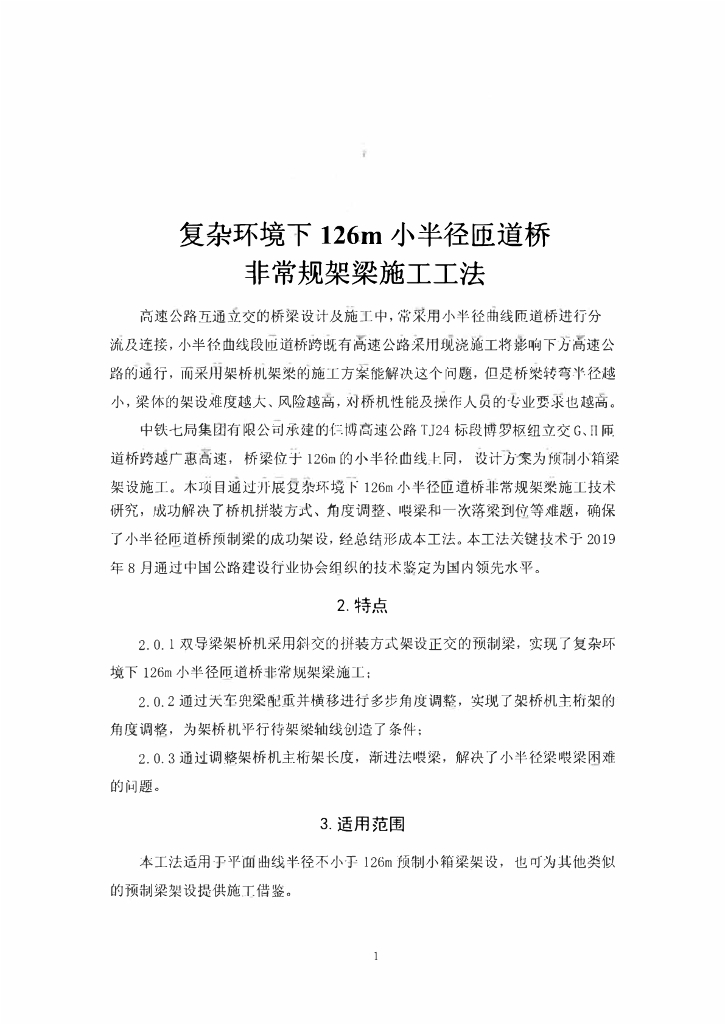 复杂环境下小半径匝道桥非常规架梁施工工法.pdf