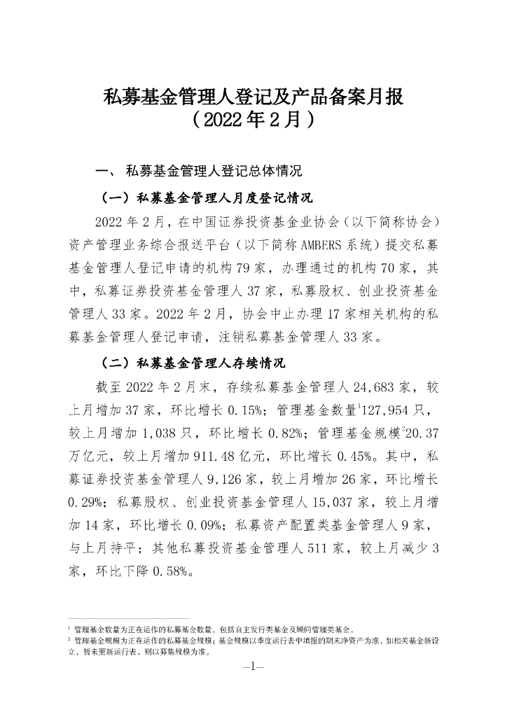 中国证券投资基金业协会:私募基金管理人登记及私募基金产品备案月报(2022年第2期).pdf