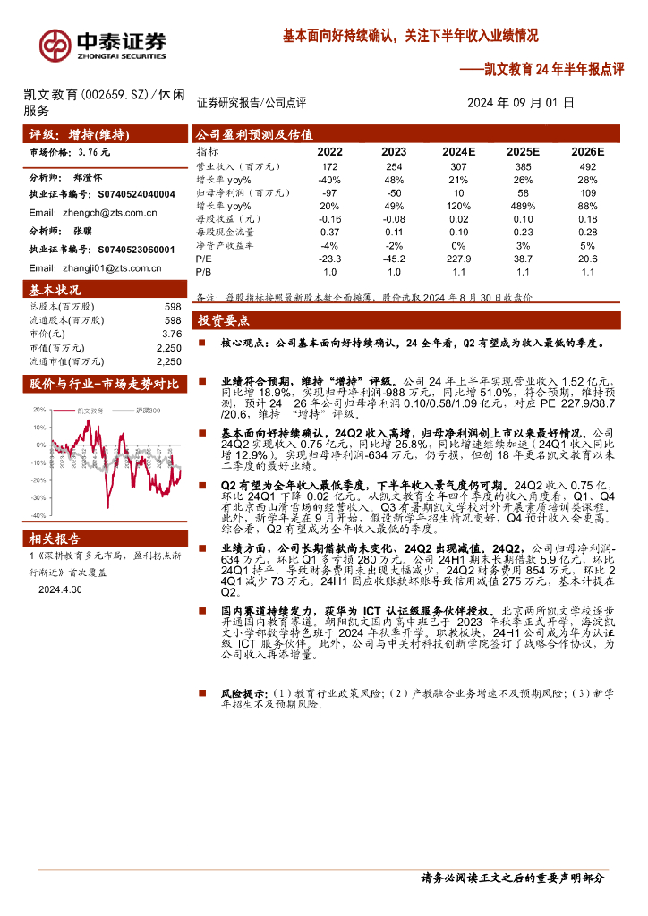 中泰证券:凯文教育24年半年报点评:基本面向好持续确认,关注下半年收入业绩情况.pdf