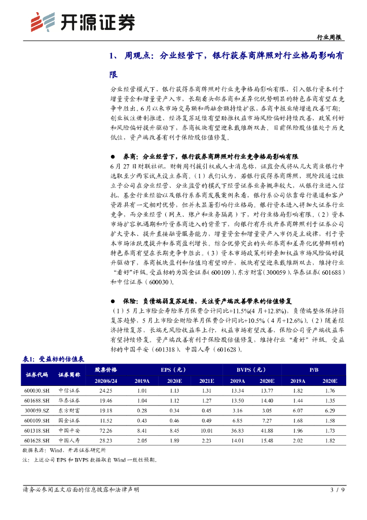 开源证券:非银金融行业周报:分业经营下,银行获券商牌照对行业格局影响有限.pdf