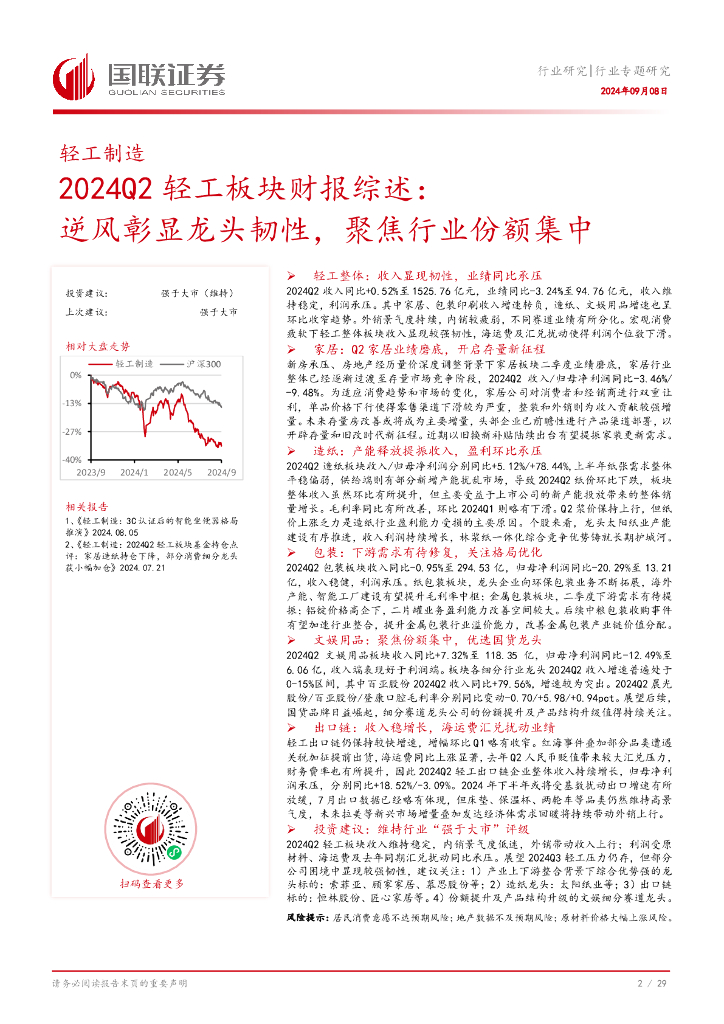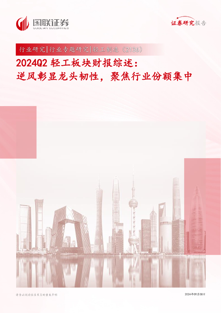 国联证券:轻工制造行业2024Q2轻工板块财报综述:逆风彰显龙头韧性,聚焦行业份额集中.pdf