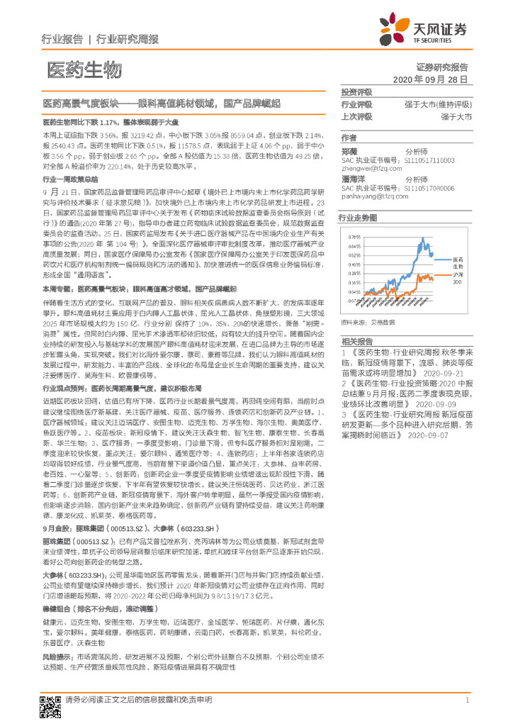天风证券:医药生物行业研究周报:医药高景气度板块——眼科高值耗材领域,国产品牌崛起.pdf