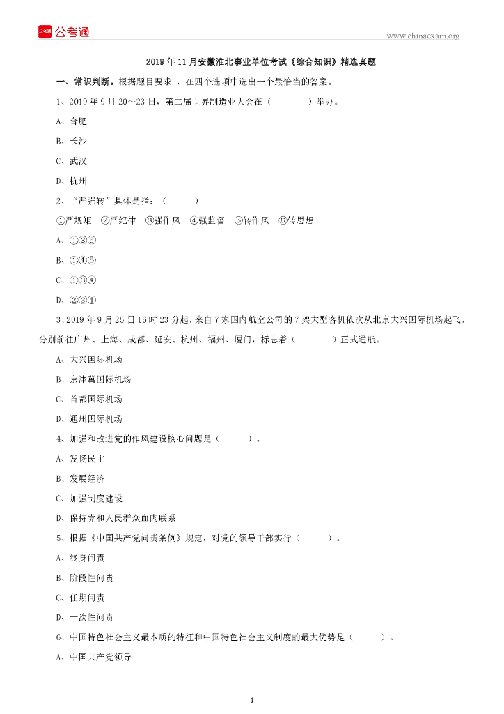 2019年11月安徽淮北事业单位考试《综合知识》精选真题.pdf