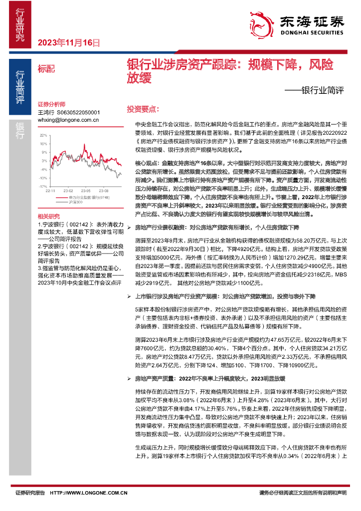东海证券:银行业简评:银行业涉房资产跟踪:规模下降,风险放缓.pdf