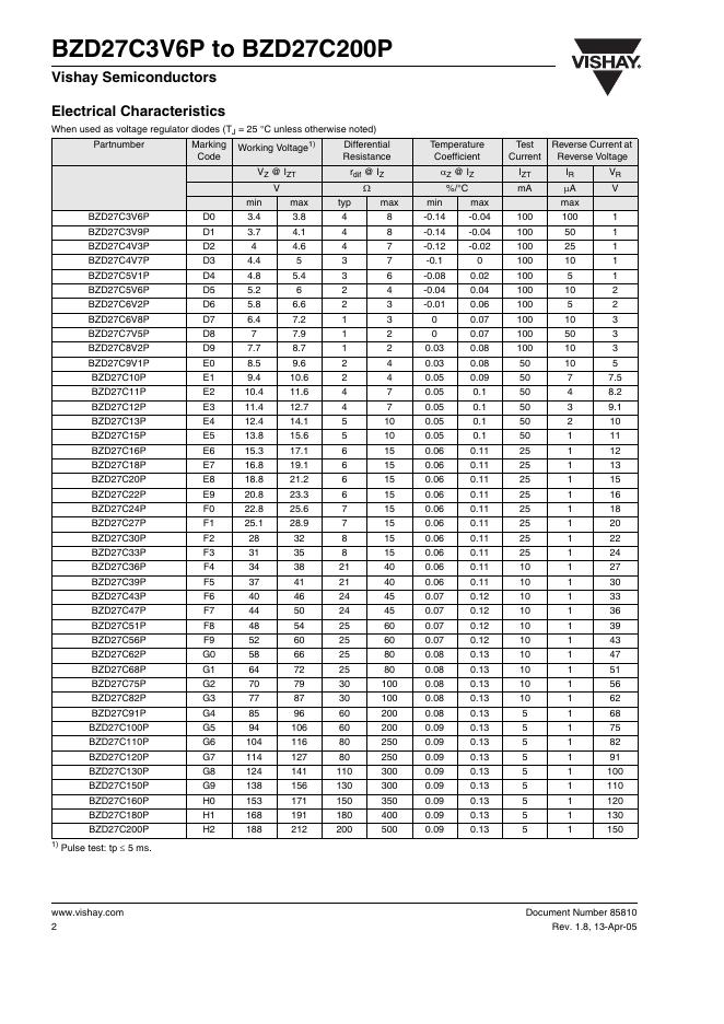 TAIWAN SEMICONDUCTOR - BZD27C3V6P to BZD27C200P Zener Diodes with Surge Current Specification 数据手册.pdf
