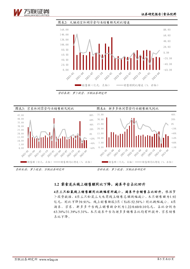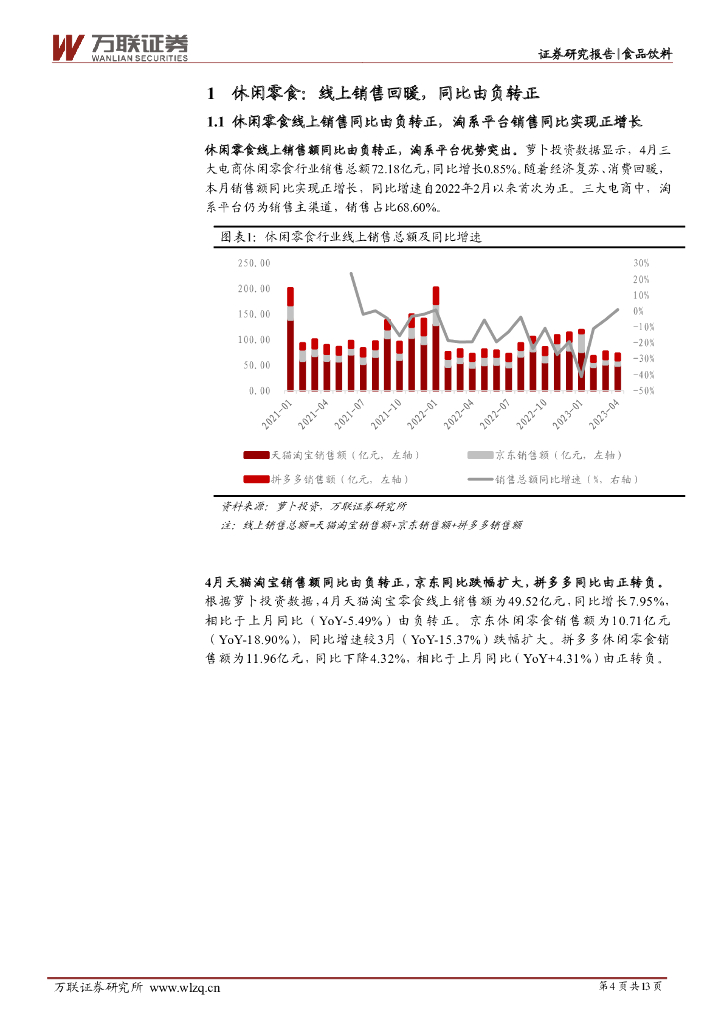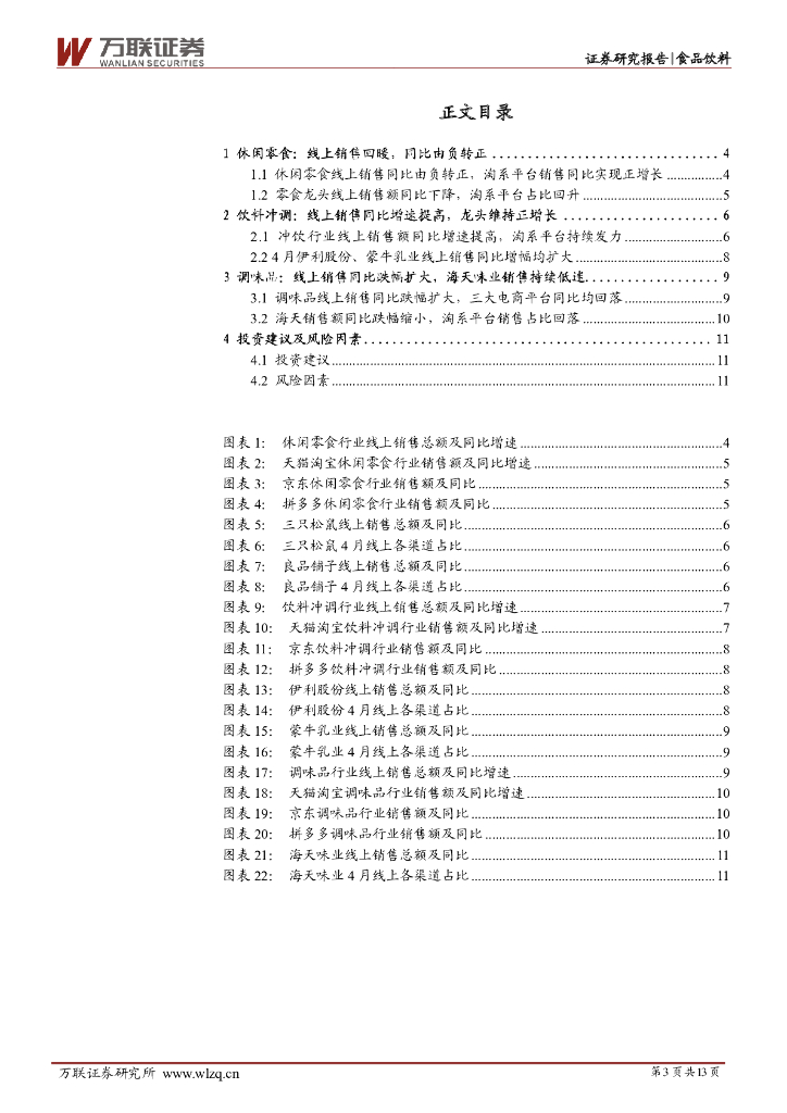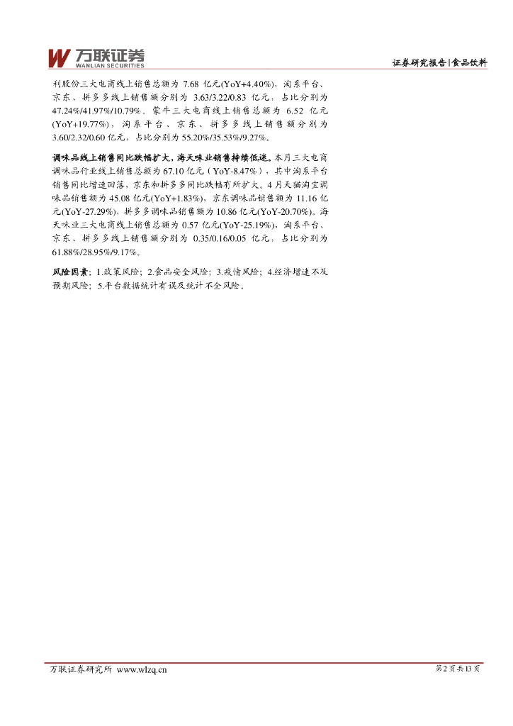 万联证券:食品饮料行业跟踪报告:4月休闲零食及冲饮销售持续复苏,调味品同比跌幅扩大.pdf