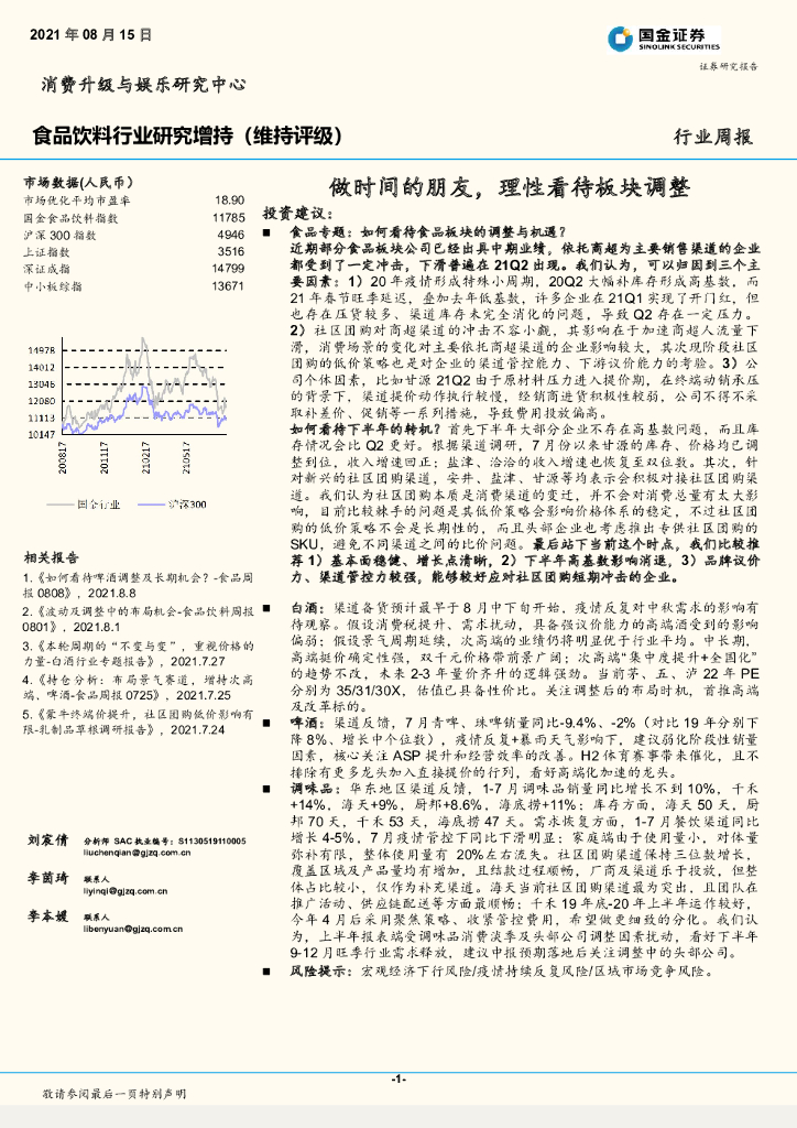 国金证券:食品饮料行业周报:做时间的朋友,理性看待板块调整.pdf
