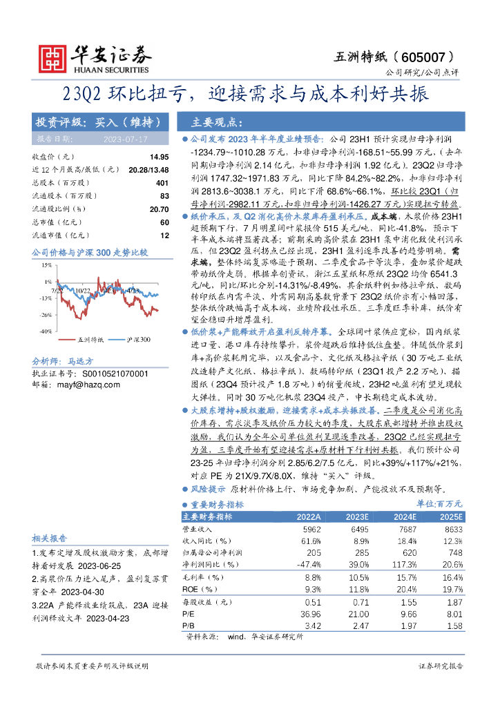华安证券:五洲特纸(605007)-23Q2环比扭亏,迎接需求与成本利好共振.pdf